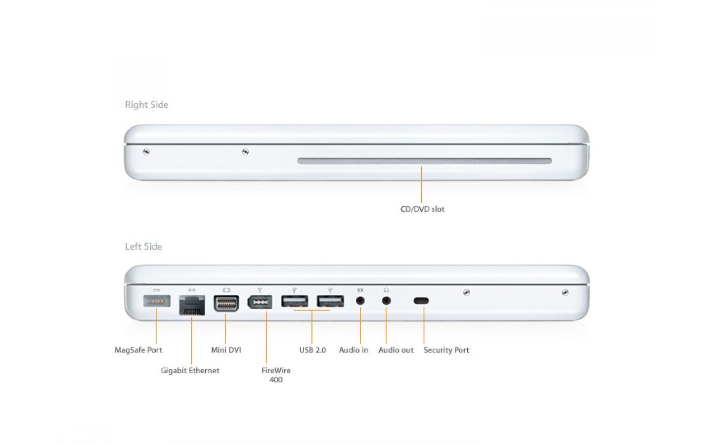 The new MacBook now comes with 1GB of memory standard and larger hard drives for the entire line perfect for running more of your favorite applications and storing growing media collections.